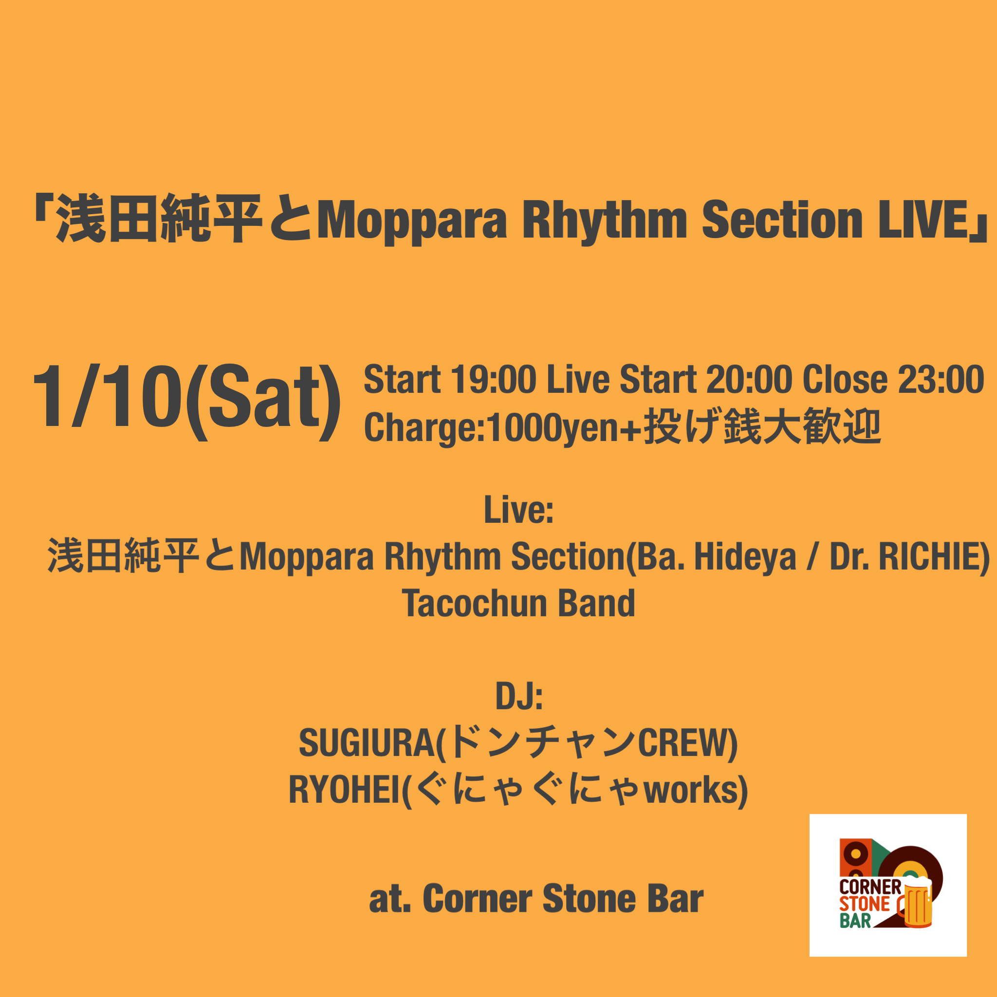 1/10(Sat) 「浅田純平とMoppara Rhythm Section LIVE」
