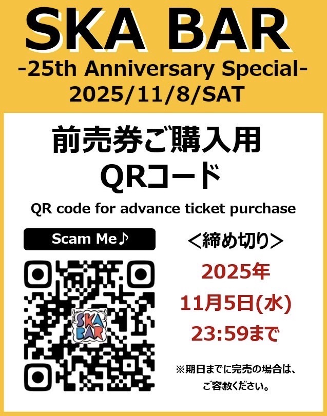 11/8(Sat) 「SKA BAR 25th Anniversary」