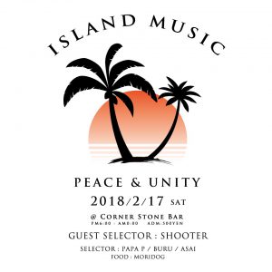 [ ISLAND MUSIC ] 2/17(Sat) 「ISLAND MUSIC」 Start 18:00 Close 0:00 Charge: 500yen Guest Selector: SHOOTER Selector: PAPA P, BURU, ASAI Food: MORIDOG Loading Map.... Corner Stone Bar西区南堀江2-13-26 2F - 大阪市イベント 34.672643970862076 135.49105533670127 日時 2018/02/177:00 PM 〜 場所 Corner Stone Bar